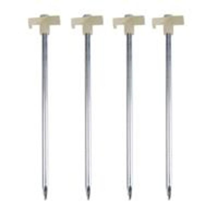Our durable steel pegs glow in the dark and are strong enough to use over and over again. Hold down your tents canopies and blanket forts with these great pegs. They come in sets of four and their phosphorescent heads charge quickly in both natural and artificial light and are ideal for use in harder terrain.Specifications