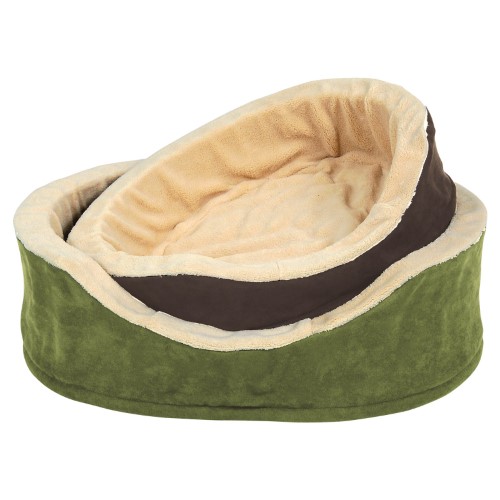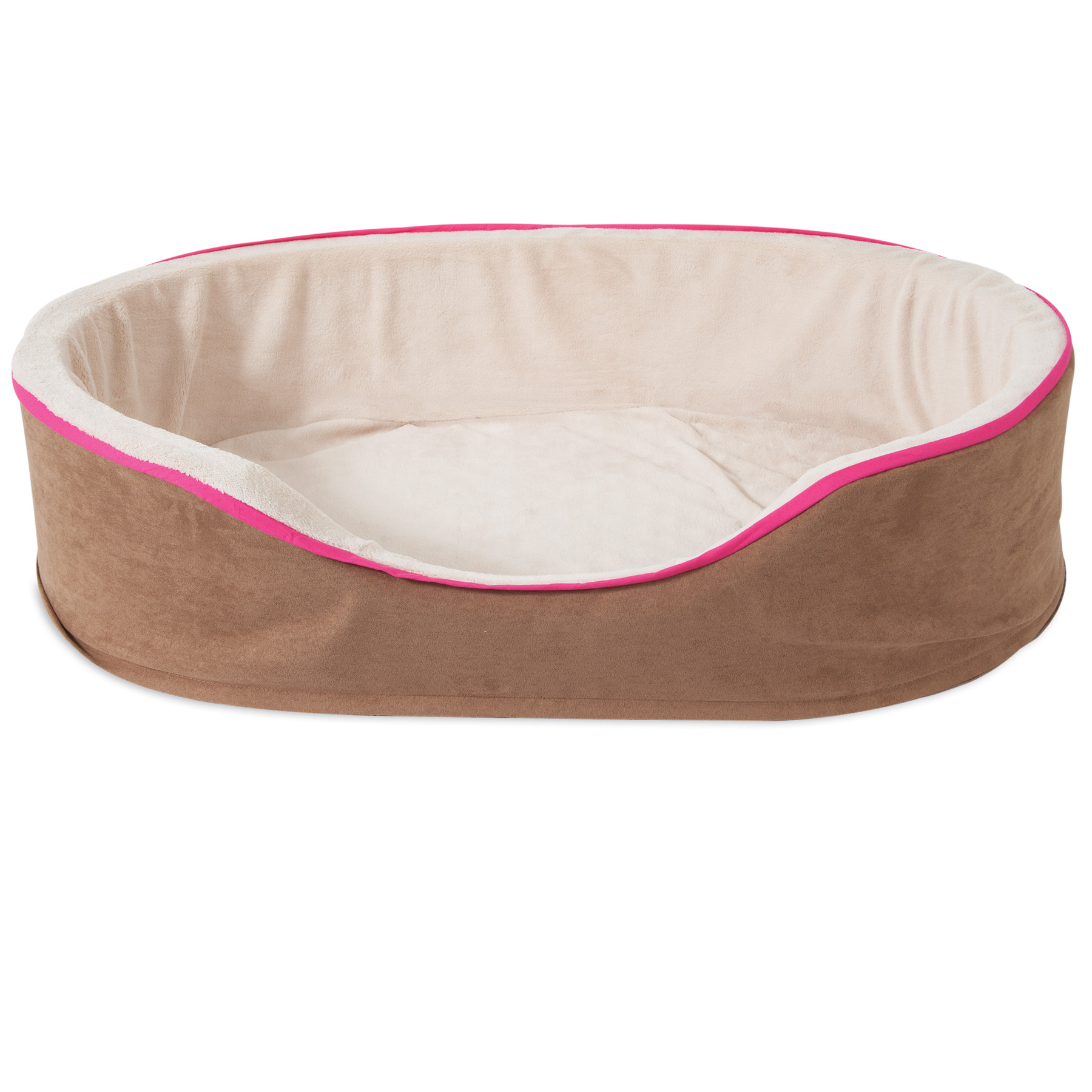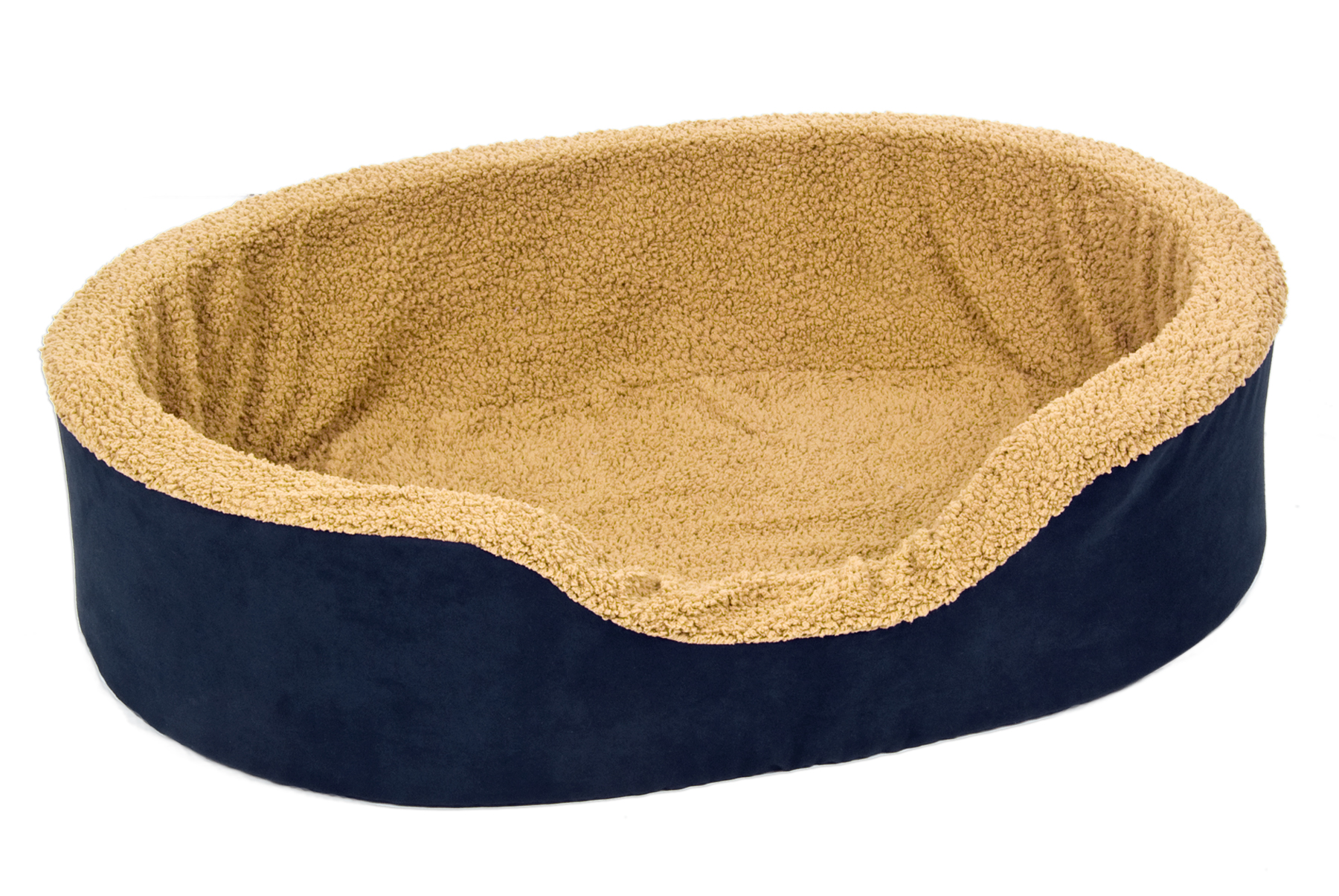 Aspen Pet Plush/Suede Oval Foam Lounger Beds are perfect for furry pets that like to curl up and cuddle in for a heavenly snooze. Your pet will love to snuggle into the raised sides that promote nesting exposure to drafts and add a warm sense of security. Perfect for furry pets that like to curl up and cuddle in for a heavenly snooze. An orthopedic base and polyurethane foam shell help the bed retain its shape while offering support and comfort. The machine washable soft plush lining exterior cover unzips making it easy-to-clean so your pets sleeping space and helps your home smell fresh. Supple microsuede with contrasting plush sleep surface. Non-skid bottom.Specifications