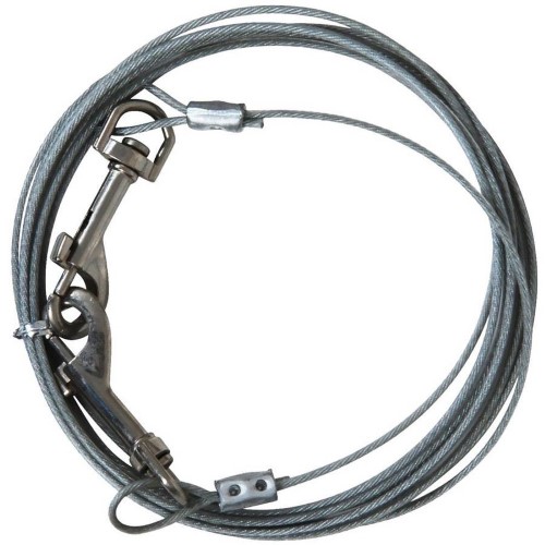 Aspen Pet containment products give dogs the freedom they crave while keeping them safe and out of trouble in the absence of a fence. Containment tie-outs are designed with your pet in mind to promote both exercise and freedom of movement. The Aspen Pet Tie-out Cable is both strong and safe. Weather-resistant vinyl coating for both strength and durability. Features versatile swivel clasps and snap hooks for added security. Easy to clean and store.Specifications