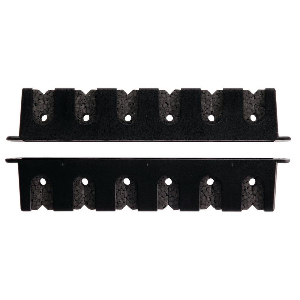 Comes in black; Corrosion proof; Durable and lightweight; Foam grip pads; Horizontally stores 6 rods neatly and securely