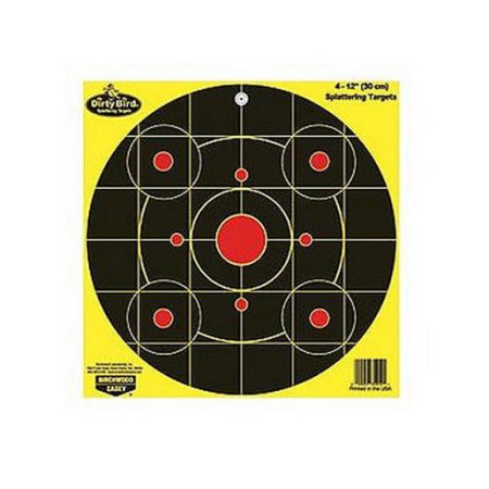 These targets offer yellow reaction to the classic dirty bird splattering performance. The 12 inches round sight-in target is designed to be the best of both worlds a classic bullseye with a functional sight-in pattern. Dirty Bird 12 inches yellow round sight-in target 4 targets.Specifications