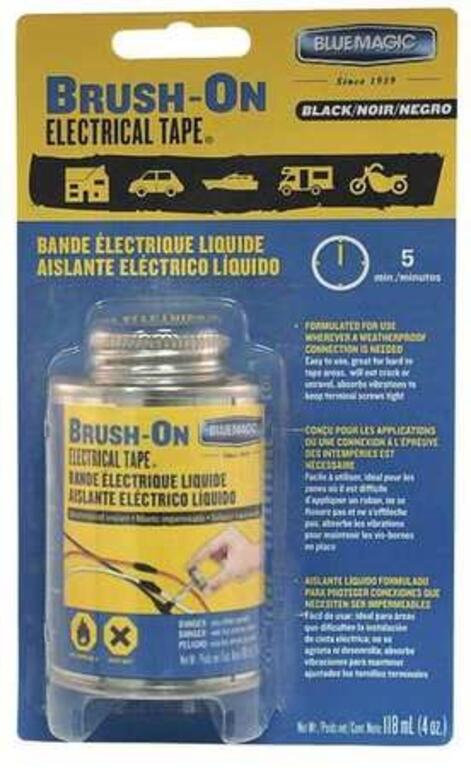 Brush-On Electrical Tape seals out moisture around hard-to-tape electrical connections. An excellent choice for heavy-duty sealing repairing and bonding in a variety of automotive home industrial farm and marine applications.