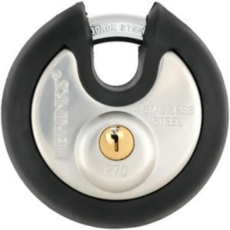 Black rubber bumper to protect valuables from scratching; Lock body is constructed of stainless steel; Round Shielded design minimizes shackle exposure; Stainless steel shackle; tool box storage units gates large Locker facilities or other places where weather resistant security is required