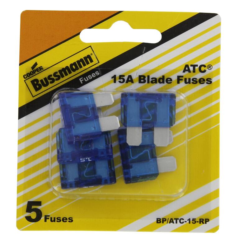 Bussmann ATC Blade Fuse - 15 Amp Blue. ATC blade fuses are widely used on import and domestic cars trucks and SUVs. Features industry standard color-coding to indicate amp arcade and an enclosed element for electrical isolation corrosion resistance and long service life. UL recognized Bussmann ATC fuses meet or exceed OEM and SAE standards. 5 pack card. Its been 100 years since the Bussmann brothers first started producing fuses from the basement of their home. And in that time span Bussmann has grown from providing fuses for horseless carriages and World War II aircraft to offering more than 30000 products. From humble beginnings in St. Louis Missouri to a global product and distribution network the Bussmann name is synonymous with technological innovation.