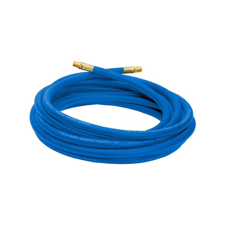 The Campbell Hausfeld 3/8-inch x 25-foot PVC air hose PA117701AV is ideal for any air compressor configuration. The PVC material is designed for long life and has a non-marring abrasion-resistant cover. Wide working temperature range: from 35 degrees to 250 degrees F. 300 PSI maximum working pressure. Hose ID: 3/8-inch.Specifications