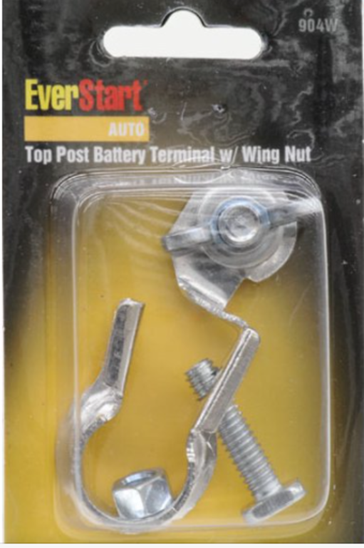 The Everstart 904W Battery Top Post with Wing Nut replaces corroded terminals for 6-12-volt batteries. Simply remove the existing terminal and attach on your existing battery. These terminals are compatible with 1-6-gauge cables and made of tin plated brass for superior conductivity. The heavy-duty construction may extend the life of your starter and reduces the risk of lead contamination. Coleman Cable Inc. is a leading manufacturer and innovator of electrical and electronic wire and cable products for the security sound telecommunications electrical construction retail commercial industrial irrigation HVAC and automotive markets. Coleman Cable Inc. offers a family of leading brands such as Designers Edge Fire Shield and Woods.