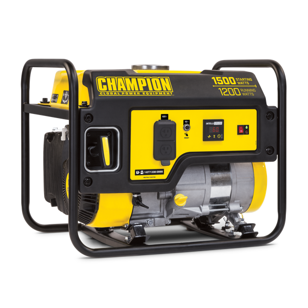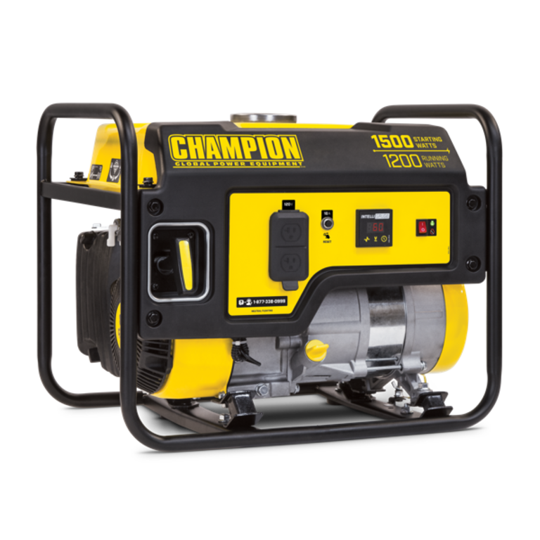 The Champion Power Equipment 100403 1200-Watt multi-purpose portable generator is designed with your safety and convenience in mind and is the perfect what if generator. At 1500 starting watts and 1200 running watts this rugged generator with its durable steel frame is easy to transport and provides just what you need for RV use camping tailgating boating hunting weekend trips family vacations and small jobs around the house. The next time theres an outage the 80cc Champion single-cylinder OHV engine will provide the power you need for a few essential items in an emergency - lights microwave fan TV modem/router cell phone charger etc. note: this unit is not recommended for emergency home backup for powering air conditioners stoves furnaces or sump pumps. Power up with champions reliable recoil start plus Cold Start technology ensures a quick start in cold weather. Champion also makes it easy to monitor voltage frequency and operating hours with Intelligauge. This unit includes two 120VSpecifications