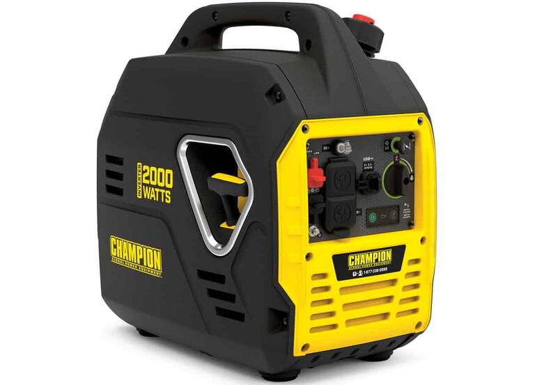 The Champion Power Equipment 200949 2000-Watt Portable Inverter Generator is ideal for camping tailgating powering items around the RV or providing backup for a few basics. This unit is not recommended for emergency home backup. Weighing in at an ultralight 39 pounds this model is under 40 lbs and is one of the lightest 2000-watt inverters in the industry. Thanks to Champions innovative design power on the go has never been easier. Power up with the reliable recoil start plus Cold Start Technology ensures a quick start in cold weather. Included are two covered 120V 20A household outlets 5-20R plus two handy 2.1A USB ports you can use to power your phone laptop or similar device. This inverter operates at 53 dBA from 23 feet about the same noise level as a dishwasher running in the next room. Using gasoline the 79cc Champion engine produces 2000 starting watts and 1700 running watts. When the 1.1-gallon tank of gasoline is full this inverter will run up to 11.5 hours at 25% load. ConneSpecifications