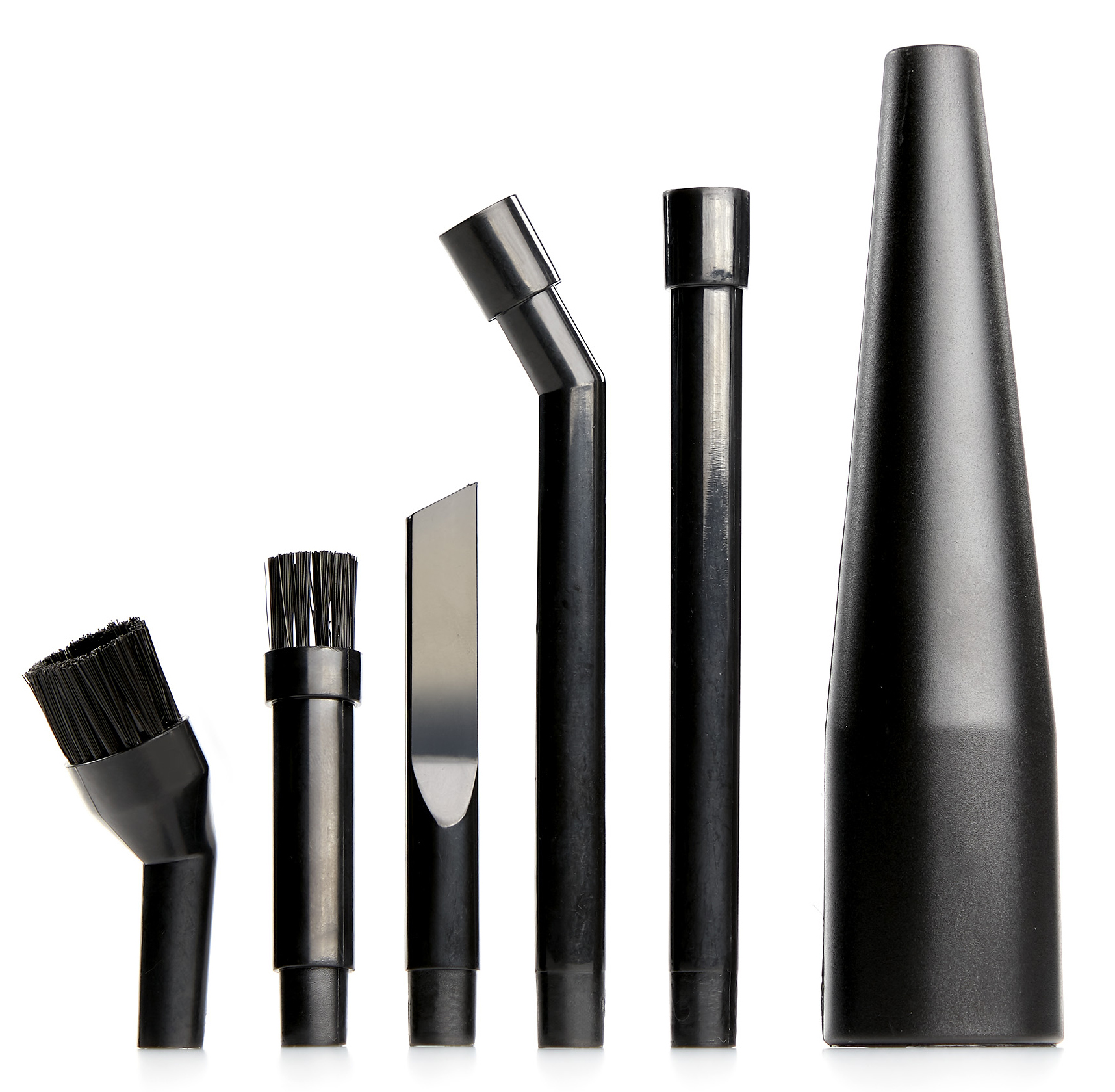 Great for detailing; Includes straight extension wand, angled extension wand blowing nozzle, round brush, oblong brush, and crevice tool; Micro-Cleaning 6 Piece Set For Wet/Dry Vacuums