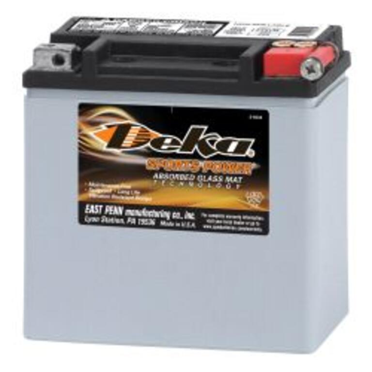 Deka ETX14L Powersports AGM Battery. Completely spillproof and leakproof AGM technology increases power while improving rider and environmental safety.This battery is also suitable as an auxiliary battery for some Mercedes Benz models.Length: 150mmWidth: 88mmHeight: 145mmWeight: 5.4kgCCA: 220Amp-hours Ah: 12AhSpecifications