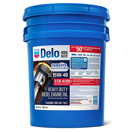 Delo 400 SDE SAE 15W-40 with ISOSYN Advanced Technology is an API CK-4 heavy duty engine oil specifically formulated for 2017 greenhouse gas (GHG 17) compliant diesel engines designed to meet lower CO2 emissions and improved fuel economy, in addition to EPA 2010 compliant low emission diesel engines with Selective Catalytic Reduction (SCR), Diesel Particulate Filter (DPF) and Exhaust Gas Recirculation (EGR) systems. It is fully compatible with previous engine models and previous API Oil Service Categories.Specifications