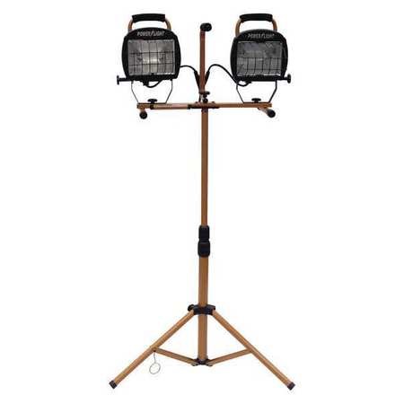 Southwire L14SLED 1000-Watt Halogen Twin Head Tripod Work Light comes equipped with a portable sled base and telescoping tripod stand making it ideal for any home or work job. The comfort grip heavy-duty handle means transporting this work light is a breeze. Its incredibly easy to use and telescopes from 40-67-inches with easy grip locking nuts. Waterproof on/off switches give you individual control of the lights and the hinged face and tempered safety glass offers both safety and versatility. This UL and CUL listed 2-in-1 fixture comes with 2 500-watt quartz halogen bulbs extra bulb storage tube shadow fighter grill and a 5-foot grounded power cord.Specifications