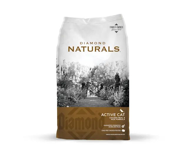 Diamond Naturals Active Cat Chicken Meal Rice Formula is formulated with high levels of protein and fat to meet the specific needs of active adult cats. Also appropriate for kittens and pregnant or nursing adult cats, this formula contains DHA to support brain and vision development in kittens. This high-protein high-fat formula provides high power nutrition in every situation. No corn no wheat no soy.Specifications