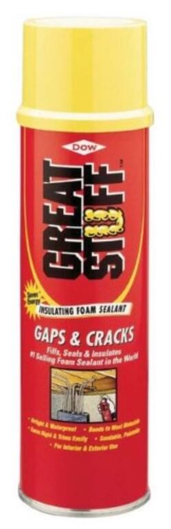 Use this Great Stuff Gaps & Cracks for quick and simple repair jobs. It doesnt shrink and requires minimal expansion. This foam sealant spray will seal up gaps while also providing insulation for temperature control. It will also keep out insects and water. This formula bonds to plywood styrofoam urethane foam board glass and most plastics. It can be painted or sanded after use making it easy to cover up. This caulk works well for vans and campers. It becomes free of tack in just 45 minutes and completely cured in eight hours. The spray comes in a 20 oz can.Specifications