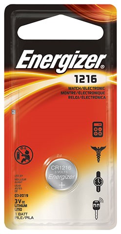 The Energizer 1216 lithium coin cell battery is a must-have for certain medical equipment such as heart-rate monitors and glucose monitors these batteries are also used for keyless entry for cars as well as for toys and games. The 1216 coin cell from Energizer is simply full of versatility. This lithium coin cell is long-lasting as it can stay for eight years in storage without losing power.Specifications