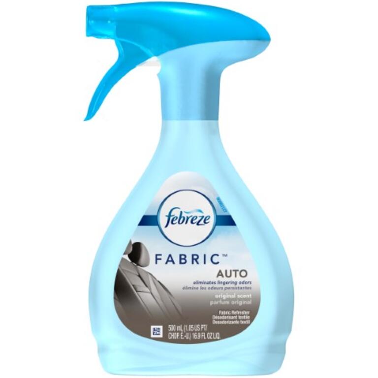 Eliminate odors from fabrics. Febreze can do even more for you. Febreze Auto will target specific problems in your car while leaving your fabrics with a light fresh scent.Febreze Auto is specially designed for use on the fabric surfaces of your car interiors. Its unique formula contains low levels of scent making it perfect to use on fabric surfaces.Specifications