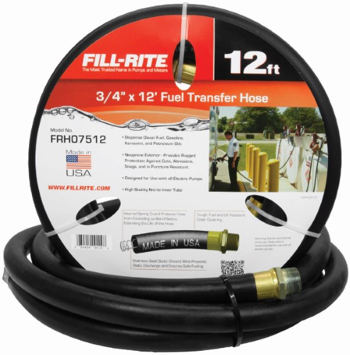 Fill-Rite Fuel Hose is antistatic and can be used with gravity feed electric- or hand-operated pumps to safely transfer flammable media.Specifications