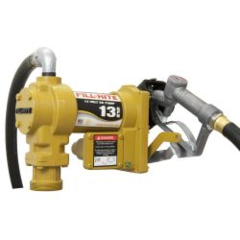 Fill-Rite 12V DC Pump with Hose and Manual Nozzle provides 13 GPM and is standard duty cast-iron and a rotary vane fuel transfer pump.Specifications