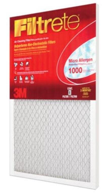Attracts and captures microscopic particles like smoke and smog and large allergens like mold spores and pollen from the air passing through the filter; Carries a 1000 Microparticle Performance Rating MPR; Outperforms fiberglass washable and non-electrostatic pleated 1 filters