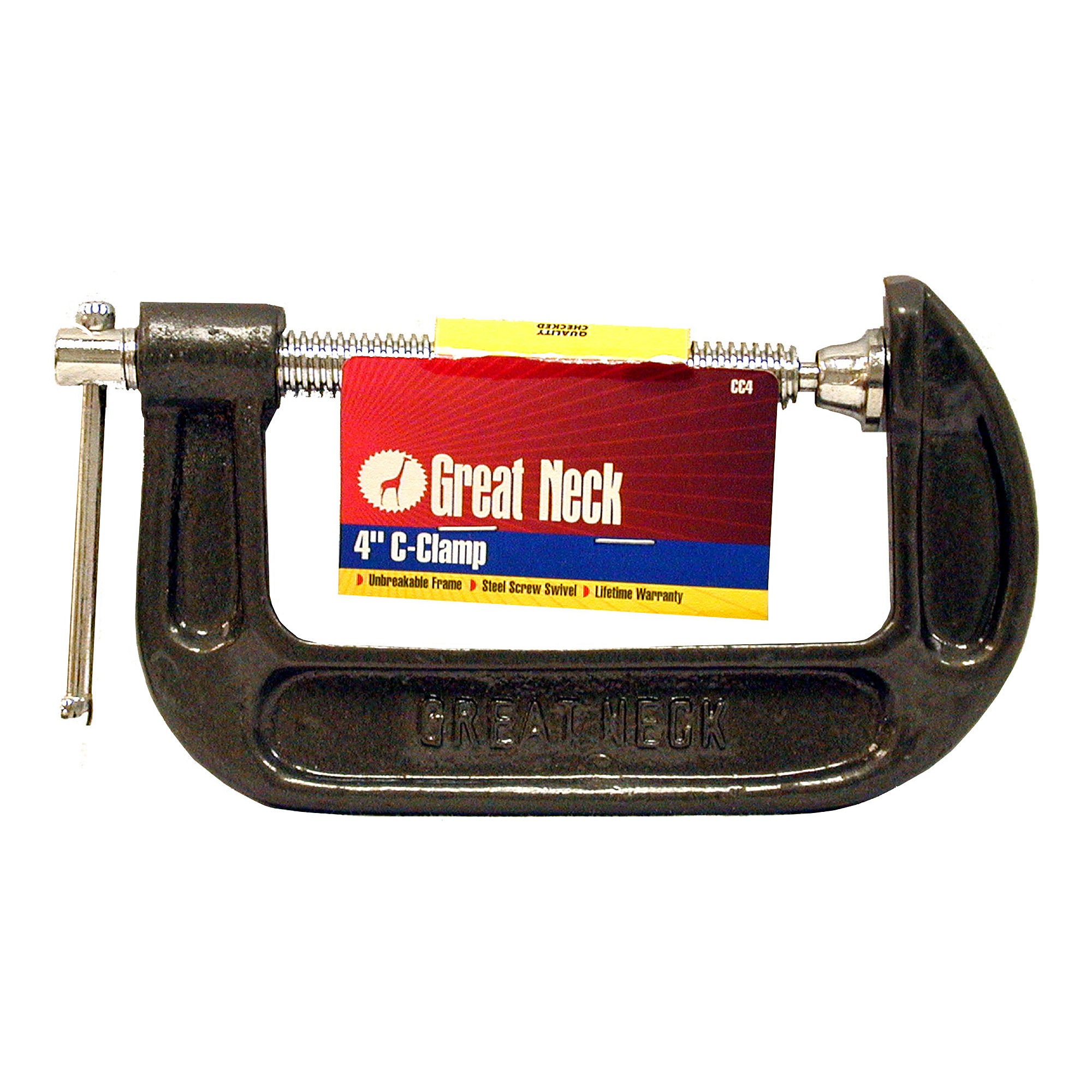 Next time you start a woodworking or welding project make sure you arent without your essential GreatNeck CC4 4-Inch C-Clamp. Made to last through any possible conditions or scenarios our forged clamp is made with a cast iron frame and nickel-plated steel forcing screw that wont rust. Its got the durability and reliability youre looking for in your go-to C-Clamp. C-Clamps are daily use tools for many welders mechanics and carpenters and as such you want to know that youre getting a clamp thats built to last and provides excellent value. The GreatNeck CC4 4-inch C-Clamp is the clamp youre looking for. Its compact design and high-quality build ensure it will do its job without ever getting in the way. This is destined to be your go-to C-Clamp for a variety of jobs. Dont sacrifice quality on your next project. GreatNeck has built its name over the last 100+ years providing the best tools especially woodworking tools and equipment at the very best values. You can trust that when you use ouSpecifications