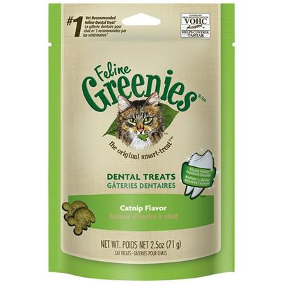 Feline Greenies Catnip Flavor Dental Cat Treats were designed to help keep your cats teeth clean and healthy. Youll be sure to hear happy purrs of joy!Specifications