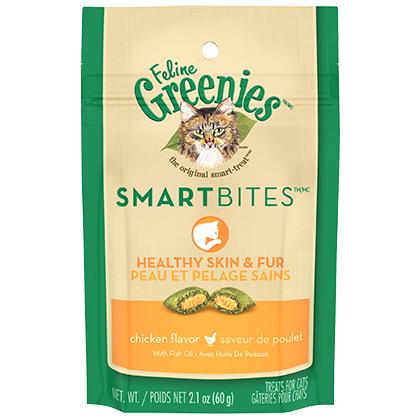 Feline Greenies Smartbites Healthy Skin & Fur Treats help you bond with and reward your cat while providing essential health benefits. These treats are not indulgent empty calories!Specifications