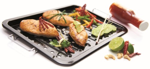 11 in. x 16 in. porcelain-coated grilling topper with stainless handles and raised contours.Specifications
