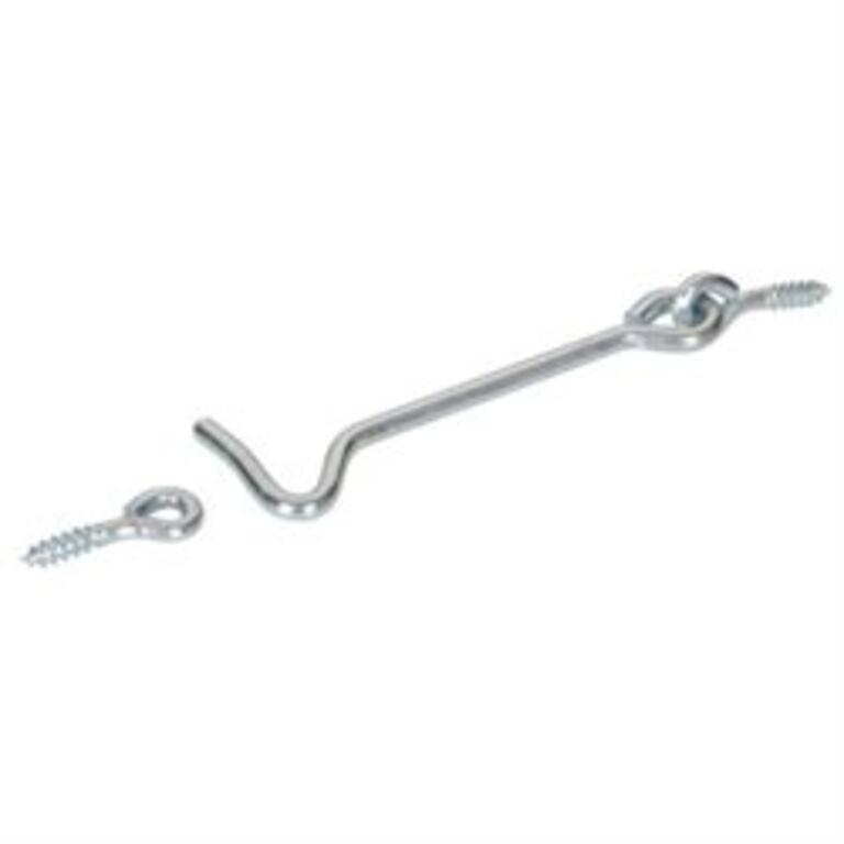 Hardware Essentials Hook and Eye Latches are great for latching gates cabinets doors and more. These robust latches are available in different finishes. Installation tip: drill a pilot hole before use.Specifications