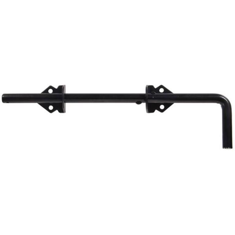 Hardware Essentials Non-Adjustable Throw Cane Bolts are used on heavy wood gates and doors. Designed to secure single or double doors in the open or closed position. Non-removable bolt can be locked in the raised position. Can be used for vertical or horizontal applications. Package includes instructions and all mounting hardware.Specifications