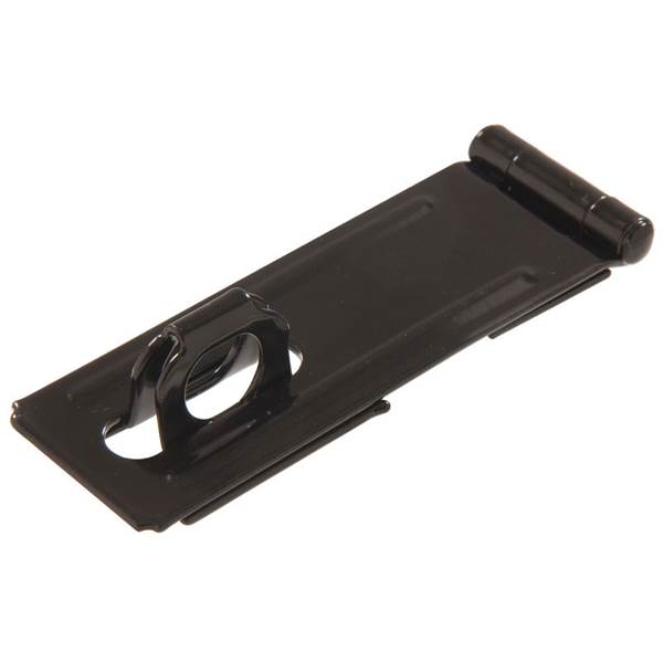 Hardware Essentials fixed staple safety hasps black are great for corner applications. Use on gates doors or any pieces you want an added measure of security on. Screws are covered when locked for security. Mounting screws included. Available in a variety of sizes.Specifications
