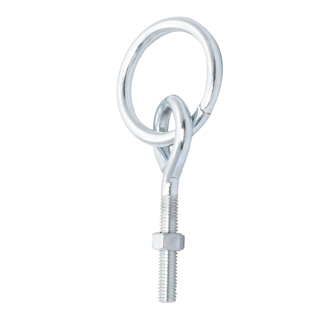 Ideal for general rope tie down applications and for bolt and spring snap uses. Hitching rings swivel 180 degrees when mounted which provides versatility and ease of use. Eye bolt with nut intended for through bolt connections.Specifications