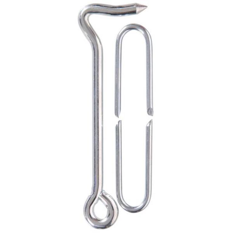 Hardware Essentials Hook and Eye Latches with Staples are great for latching gates cabinets doors and more. These robust latches are easy to use. Use the two staples to hold and latch your hook in place. Installation tip: drill a pilot hole before use.Specifications