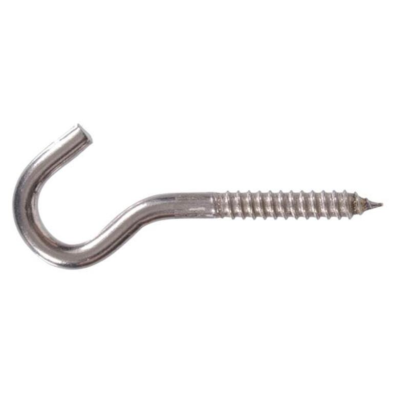 Hardware Essentials Heavy Duty Screw Hooks are great for hanging items through out the home. Curved lip helps prevent items from falling off hook. Available in zinc brass and stainless steel finish. Available in different sizes. Do not use to hang or lift loads.Specifications