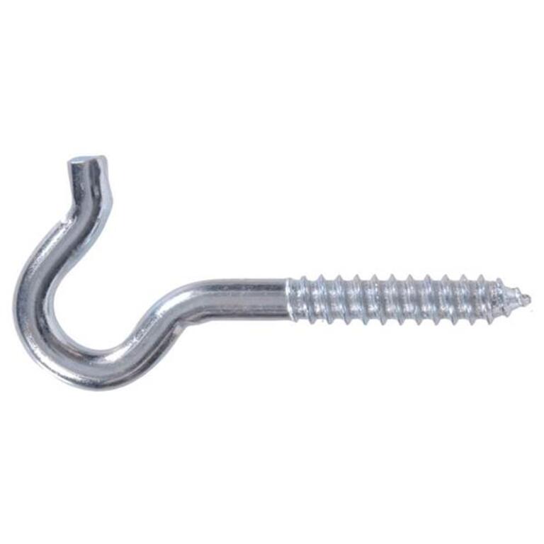 Hardware Essentials Heavy Duty Screw Hooks are great for hanging items through out the home. Curved lip helps prevent items from falling off hook. Available in zinc brass and stainless steel finish. Available in different sizes. Do not use to hang or lift loads.Specifications