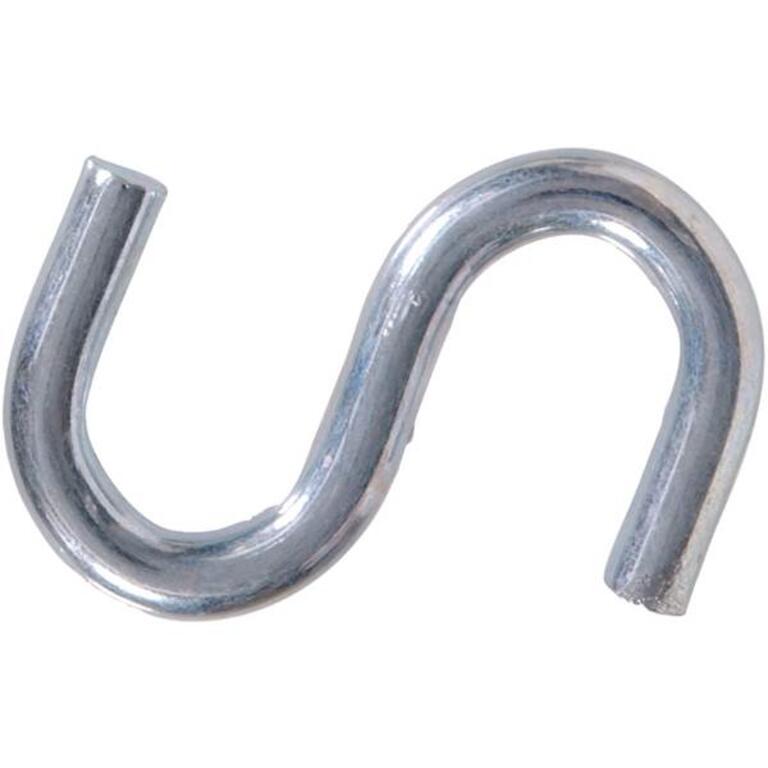 Hardware Essentials S-hooks are great for reorganizing. Use them in the workshop home or garden. S-hooks have a larger opening than 8-hooks. Use on broader rods for hanging. Zinc finish helps prevent rust. Available in several sizes and finishes.Specifications
