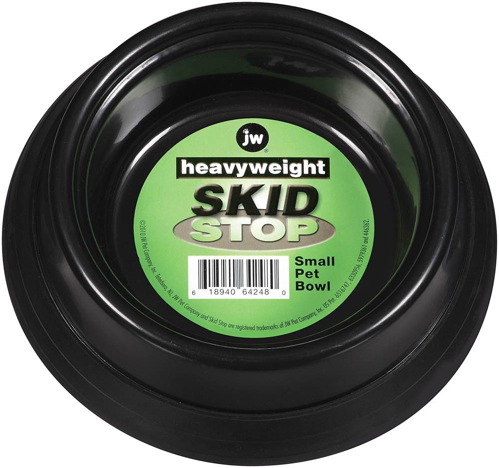 Stop your pet from scooting sliding and chasing his bowl across the floor with the JW Skid Stop Heavy Weight Plastic Bowl. This Skid Stop bowl is made of easy-to-clean stain-resistant plastic with a heavy-duty rubber bottom rim. This rim makes it nearly impossible for your furry friend to skid move or tip its bowl during meal time. Dishwasher safe and rust and bacteria resistantSpecifications