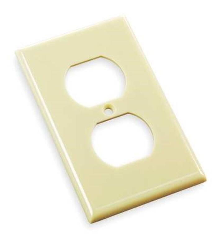 insulation device mounting includes: color matched metal mounting screws CSA certified UL listed for commercial; standard size 1 gangs; thermoset White smooth Non-Metallic; Wall plate 1-Duplex receptacle