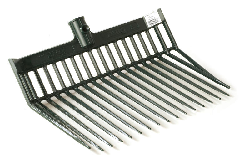 EXTRA-STRONG 100% POLYCARBONATE BEDDING FORK; SPECIALLY DESIGNED TINES PROVIDE EASY MANURE PICKUP WITH LESS SPILLING