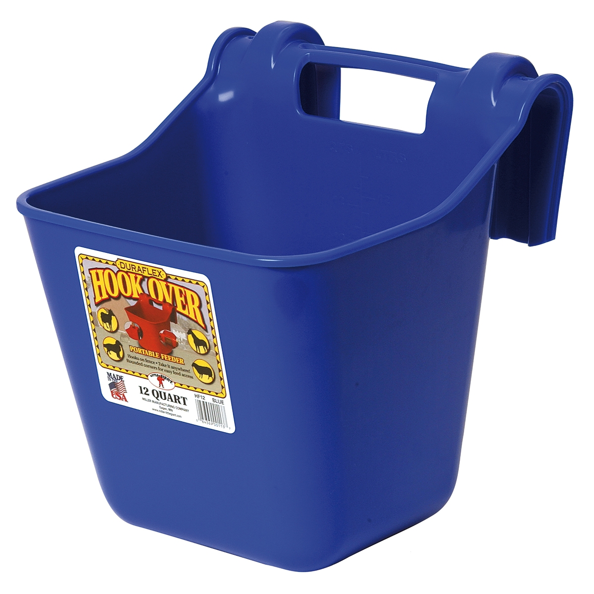 The Little Giant Hook Over Portable Feeder is ideal for field pasture trailer stall or kennel. Performs well for a variety of animals including horses goats sheep and dogs. Durable impact-resistant feeder has a molded-in bracket that easily hooks over any 2-by-wide board to instantly deliver a sturdy feed bucket. For more permanent installations simply install two screws not included in the holes provided. Stackable for carrying or storage. Top features a convenient carrying handle so you can carry one or more feeders in one hand.Specifications