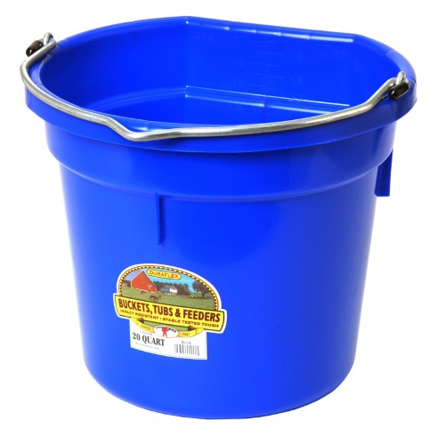 Little Giant Flat-Back buckets are a favorite on farms and ranches everywhere. The Flat-Back fits more compactly for hanging against a wall or fence plus it makes hauling heavy loads a lot easier. Our buckets are made from polyethylene resin that is impact resistant protects against warpage and helps prevent stress cracks. This bucket features a heavy-duty wire bail with notch for hanging and stacking ribs so the pails come part easier when stacked. Holds 20 quarts 5 gallonsSpecifications