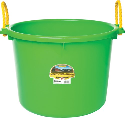 The perfect solution to a never-ending problem! The Little Giant 70-Quart Muck Tub can help you handle big or small cleanup jobs with ease. The ample mouth size lets you load it up fast and the poly rope handles are strong and comfortable. Made from high-density polyethylene to protect against warpage and help prevent stress cracks.Specifications