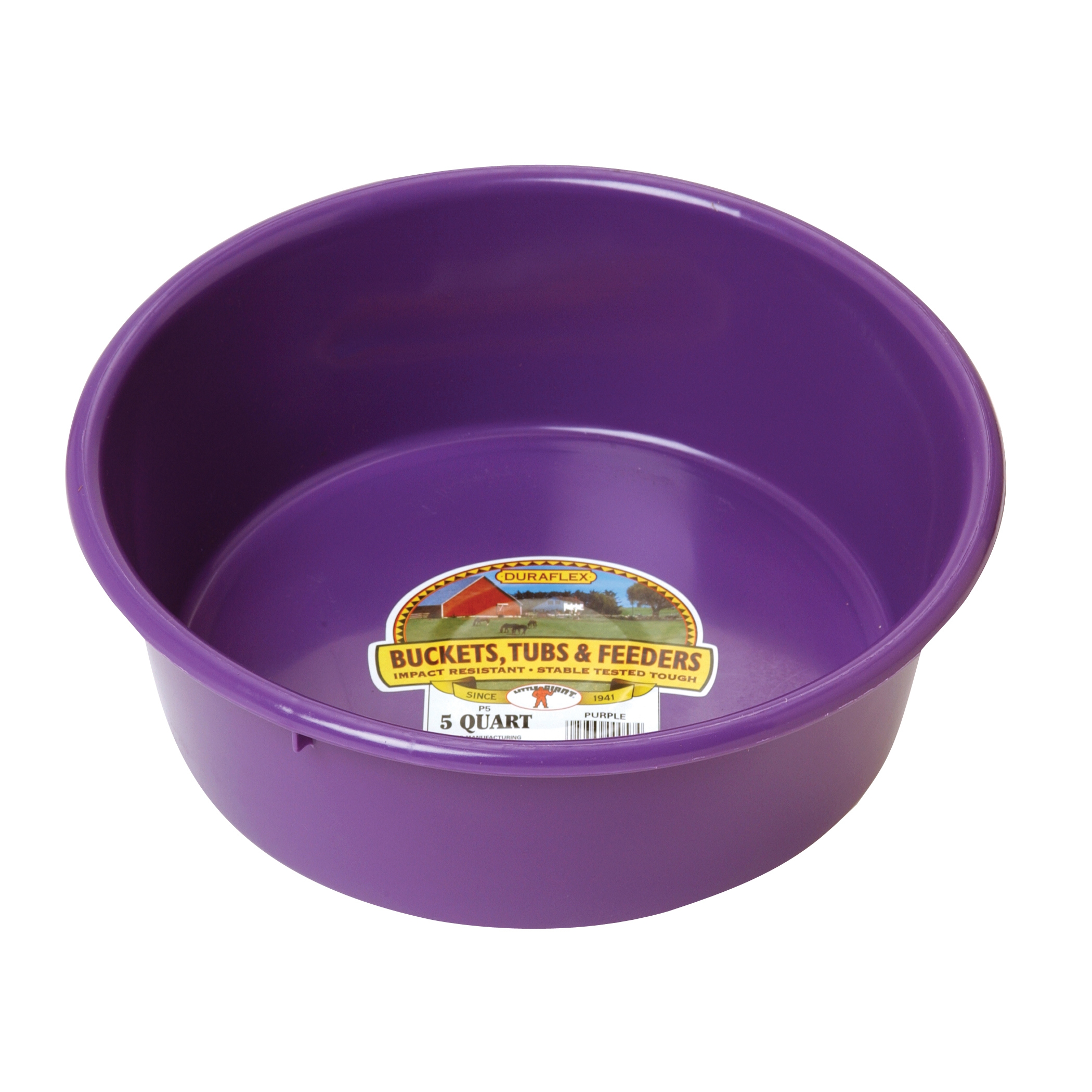 Great for farm ranch home or shop; Holds 5 quarts 1.25 gallons; Tough impact-resistant DuraFlex plastic; Versatile utility pan for pet and livestock feedin