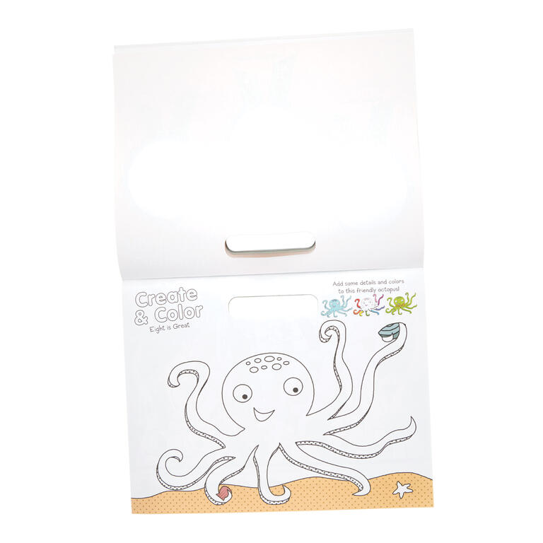 Under the Sea Playmats coloring and activity pad lets kids bring their creative touch to the table! More than just paper placemats, the pad includes 24 pages of ocean-themed coloring, cutting, and creative activities that keep kids entertained and learning. Complete partial pictures, learn to draw, practice patterning and counting, find matching pictures, and much more! The pad has a built-in handle, so its easy to bring to a restaurant, in the car, on the go, to the dinner table, or anywhere kids want. The high quality white bond sheets tear cleanly away from the pad and make perfect recyclable placemats. For more than 30 years, Melissa & Doug has created beautifully-designed imagination- and creativity-sparking products that NBC News called the gold standard in early childhood play. We design every toy to the highest-quality standards, and to nurture minds and hearts. If your child is not inspired, give us a call and we'll make it right. Our phone number is on every product!Specifications