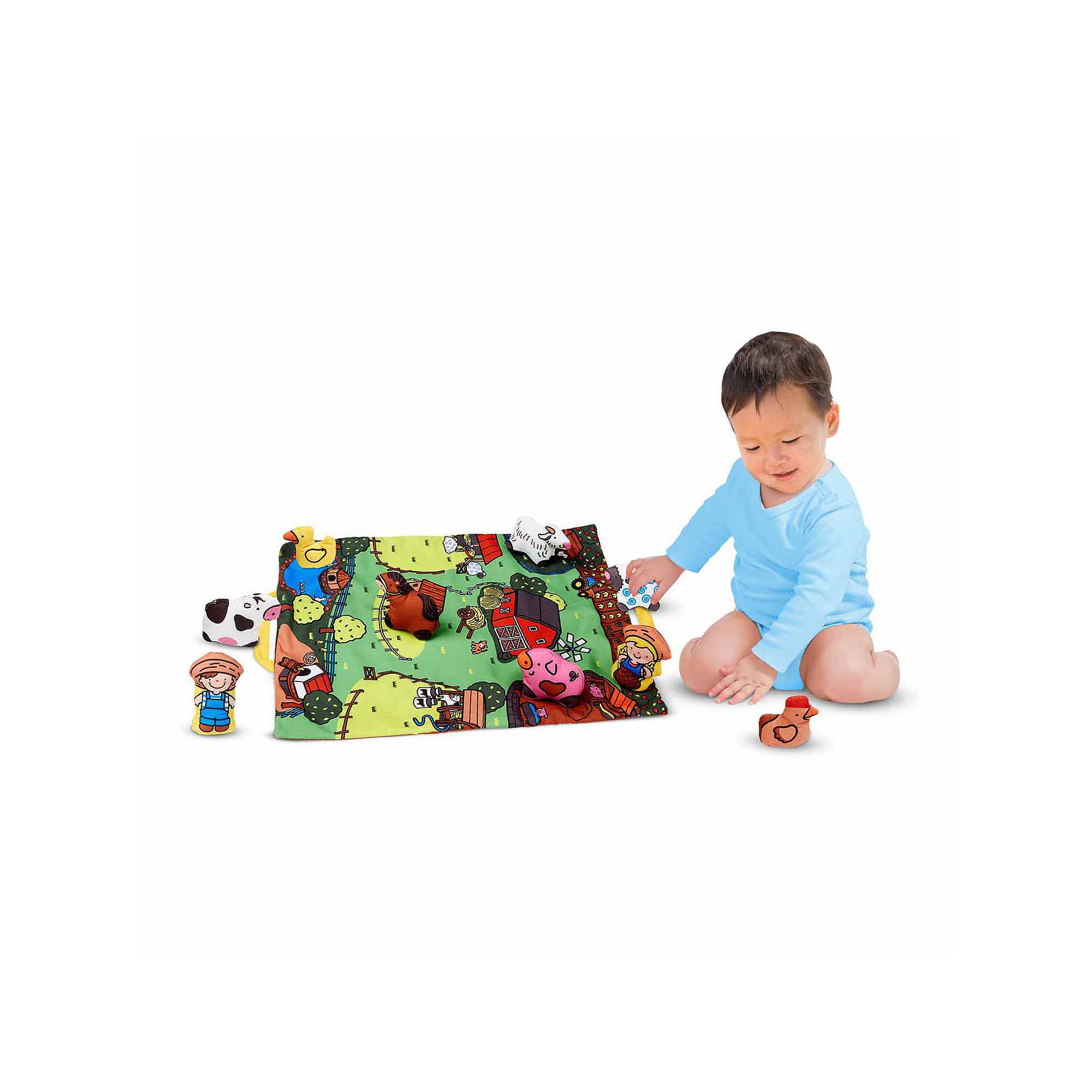 Take the fun along with you with this versatile colorful play mat and farm friends set! The mat with a non-skid backing features an illustrated farm scene in bright eye-catching colors. The nine soft fabric animals and farmer figures crinkle rattle or squeak. All fabrics are easy to clean. The play mat folds up to become a convenient storage bag for the farm friends making it perfect for travel. When open the mat measures 19.25 x 14.5 inches. Melissa & Doug Ks Kids toys nurture early childhood development in three key skill areas: physical cognitive and social. With interactive designs and multisensory features Ks Kids promotes constructive play and effortless learning keeping interest high and new skills flourishing throughout the baby and toddler years!Specifications