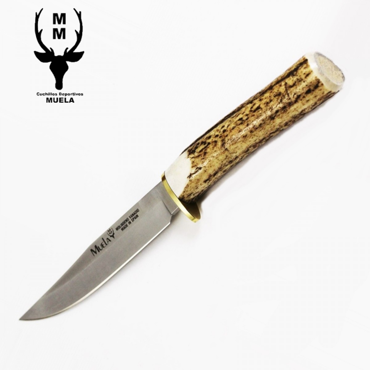 Genuine deer horn handle hunting knife with full grain button snap leather sheath.Specifications
