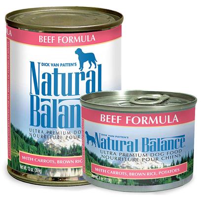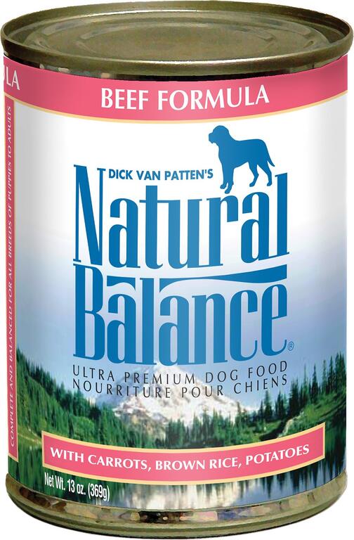 Wrigley won't have any problems finding the beef in this hearty meal. Natural Balance Ultra Premium Beef Formula Canned Dog Food blends high-quality meat, fresh carrots, brown rice and potatoes to keep big appetites satisfied and your pup full of playful energy. It contains no artificial ingredients or byproducts, so even picky eaters or dogs with digestive problems will lick the bowl clean.Specifications