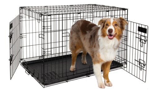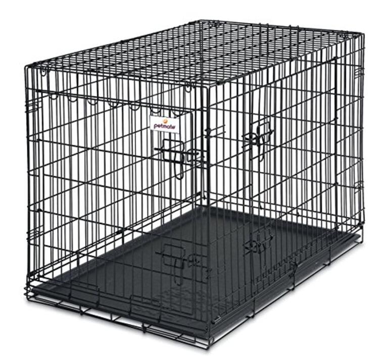 Kennel train your dog with the Petmate 2 Door Training Retreat Wire Crate. Available in a variety of sizes for dogs of all breeds the 2 Door Training Retreat features a leak-proof break-resistant pan and is durably designed with welded steel construction. To keep your pet safe and secure while youre away the 2 Door Training Retreat features a patented 5-Point Locking System that elimiates any gaps in the top sides and middle of the door increasing the strength and safety of the overall door system. Easily folds down flat for storage or transport. The 36 INCH 2-Door Training Retreat offers the front door/side door option.Specifications