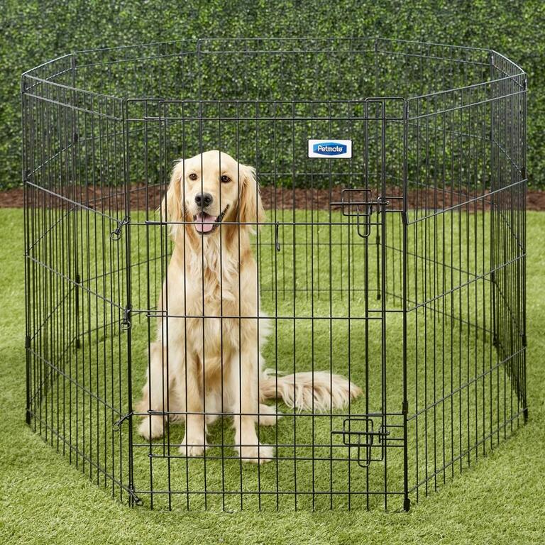Give your pet a safe dedicated space to run and play with the versatile Single Door Pet Exercise Pen from Petmate. Perfect for indoor or outdoor use this exercise pen has one double-latch door that makes it easy for pets and pet-parents to enter and exit the pen when needed. The Single Door Exercise Pen is made of durable wire with a solid hinge design making it effortlessly easy to set up and fold down for portability and storage. Its snap hook assembly feature can attach the pen to any wire crate to give your pet even more room.Specifications
