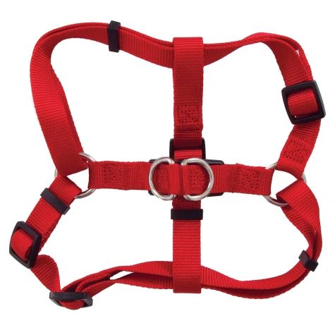 Getting your dog in and out of its harness is a cinch with the Petmate Adjustable Standard Step-In Core Harness. Simply lay the harness flat on the ground and place the dogs front paws through the openings pull the harness up around chest and then click the buckle shut. The easy step-in design and easy-to-use plastic adjustable slides are ideal for squirmy pets. Harnesses reduce stress allowing the weight to be distributed evenly through the chest and shoulders when your beloved dog pulls during walking. Heavy-duty stitching for lasting quality and metal D-rings for attaching identification tags and a leash.Specifications