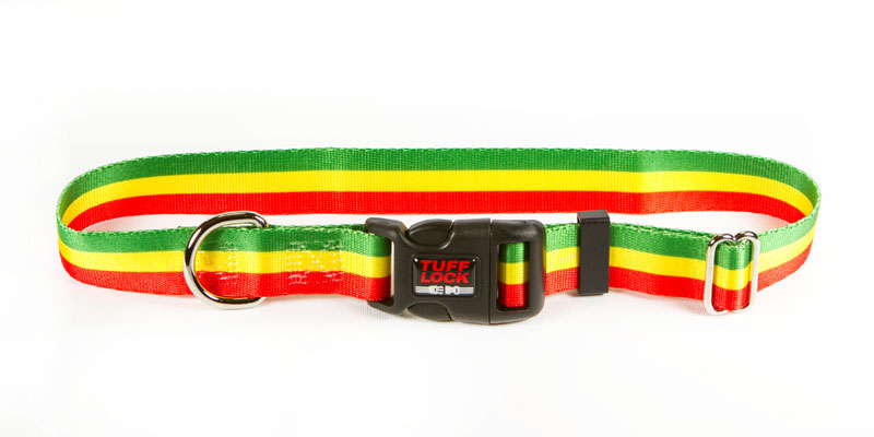 1/2 INCH WIDTH; D RING FOR LEASH AND ID; HAND SEWN WITH HIGH QUALITY NYLON; ORIGINAL TUFFLOCK PLASTIC BUCKLES WITH EASY SNAP-AND-GO RELEASE